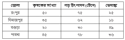 নিচের তথ্যের আলোকে প্রশ্নের উত্তর দাও :