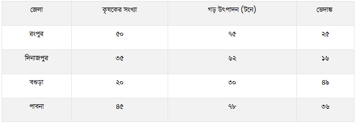 রংপুর ও পাবনা জেলোর ধান উৎপাদনের সম্মিলিত গড় কত?