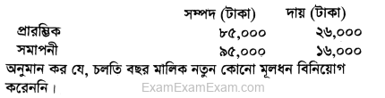 উত্ত বছরে তিনি অতিরিক্ত মূলধন আনেন ১০,০০০ টাকা এবং ব্যক্তিগত প্রয়োজনে তার উত্তোলন ছিল ১২,০০০ টাকা।