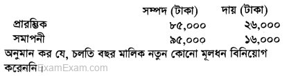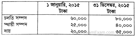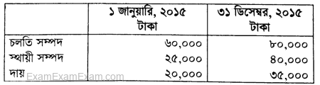 ২০১৫ সালের ১ জানুয়ারি তারিখে জনাব মিজানের মোট সম্পদ ২,২০,০০০ টাকা এবং মোট দায় ৯০,০০০ টাকা। ৩১ ডিসেম্বর ২০১৫ তারিখে মোট সম্পদ ২,৭০,০০০ টাকা এবং মোট দায় ১,০০,০০০ টাকা।
