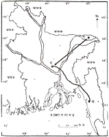 'খ' চিহ্নিত বিভাগীয় শহরটি কোন নদীর তীরে অবস্থিত?