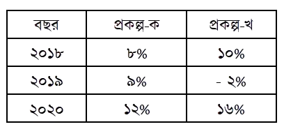 দুটি প্রকল্পের বিগত তিন বছরের আয়ের হার নিম্নরূপ: