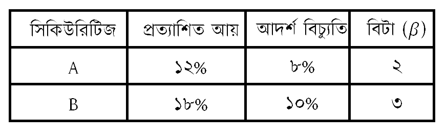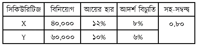 কোয়ান্টাম সিকিউরিটিজ পুঁজিবাজারে বিনিয়োগকারী একটি প্রতিষ্ঠান। প্রতিষ্ঠানটির পোর্টফোলিও ম্যানেজার বিনিয়োগের জন্য নিম্নোক্ত দুটি সিকিউরিটিজ চিহ্নিত করেছেন এবং ঝুঁকি ও আয়ের হার সম্পর্কিত নিম্নোক্ত তথ্য উপস্থাপন করেছেন: