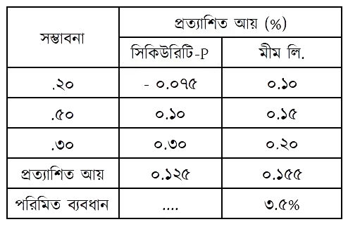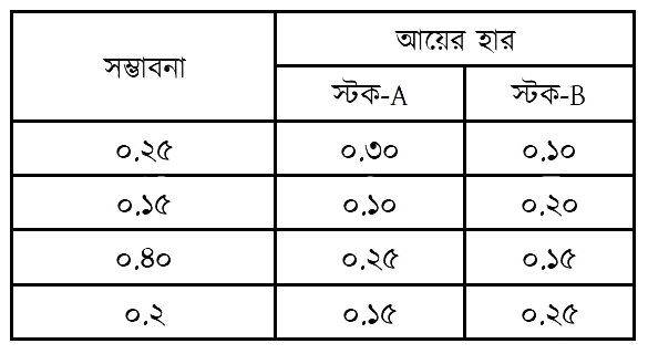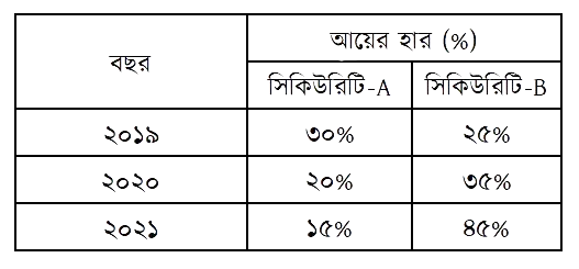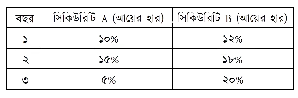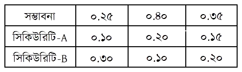 দুইটি সিকিউরিটি A এবং B-এর আয়ের হার ও সম্ভাবনা নিচে প্রদান করা হলো-