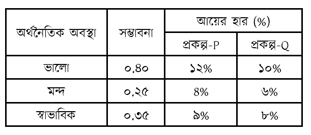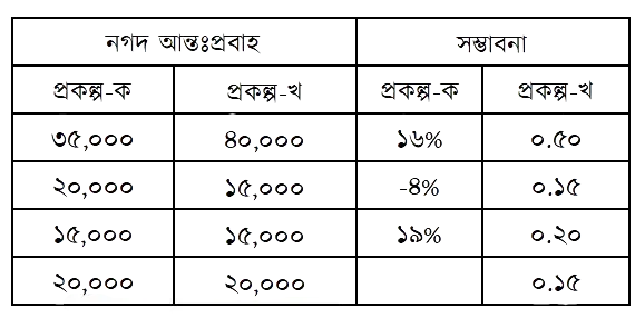 নিচের দুটি প্রকল্পের প্রত্যাশিত আয় ও সম্ভাবনা দেওয়া হলো-