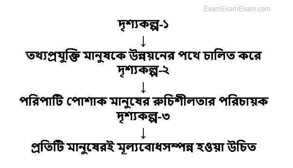 দৃশ্যকল্প-১ : জয়নুল আবেদীনের পোশাক ও কথাবার্তায় একটি চমৎকার স্টাইল আছে। তার সবকিছুতেই একটি পরিপাটি ভাব। এজন্য সবাই তাকে পছন্দ করে। ডিজাইনে তিনি বাংলাদেশ ও বহির্বিশ্বে সুনাম অর্জন করেছেন। দৃশ্যকল্প-২ : দার্শনিক এরিস্টটল খুবই জনপ্রিয়। কারণ তিনি সবসময় সত্য কথা বলতেন। সবসময় মিথ্যাকে বর্জন করতেন। সবকিছু যাচাই-বাছাই করে সঠিকটি গ্রহণ করতেন। এজন্য তিনি সত্য ও মিথ্যাকে কখনই এক করেননি।