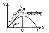 চিত্রে O বিন্দু হতে একটি পাথর বেগে 40° কোণে ছোঁড়া হলো ।