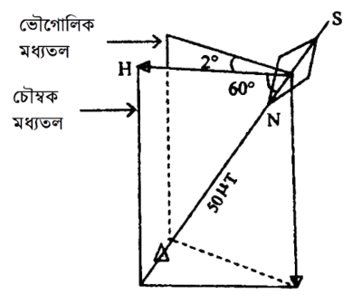 ঐ স্থানের ভূ-চৌম্বক ক্ষেত্রের অনুভূমিক উপাংশ এর মান কত?